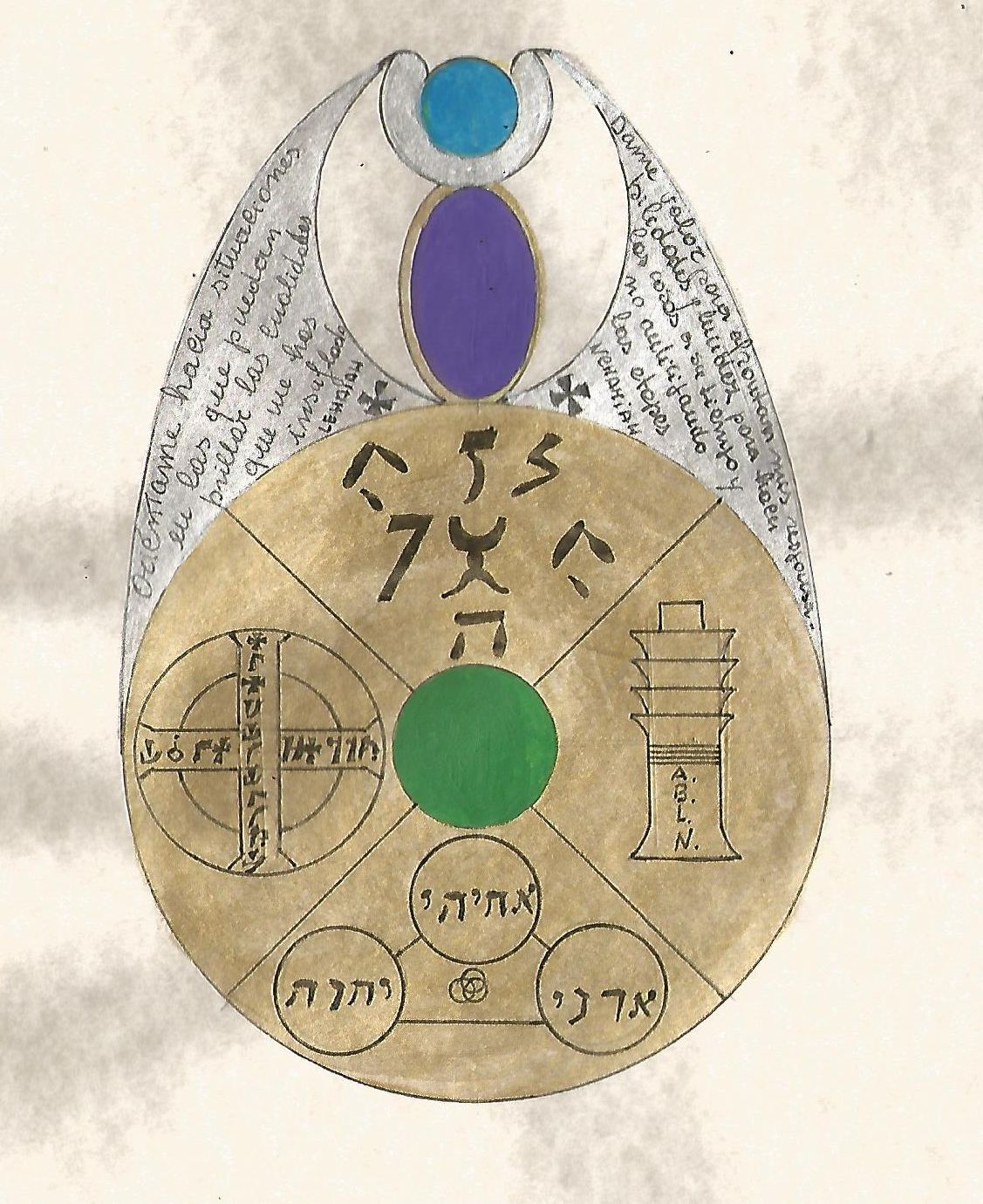 En el reverso hay muchísimas inscripciones, la protección y la gráfica cabalística.